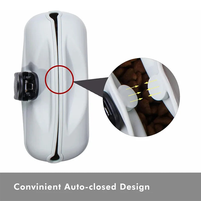 Achieve effective training results with our Smart Dispensing System. The wide, accessible opening makes grabbing a single treat effortless, giving you precise portion control for every reward. This functionality is key to managing your dog's caloric intake during training and preventing overfeeding. Despite its compact nature, the pouch boasts a Generous Capacity, perfectly sized to hold a full day's supply of training treats or kibble (approx. 250g), eliminating the need for constant, annoying refills during long outings.